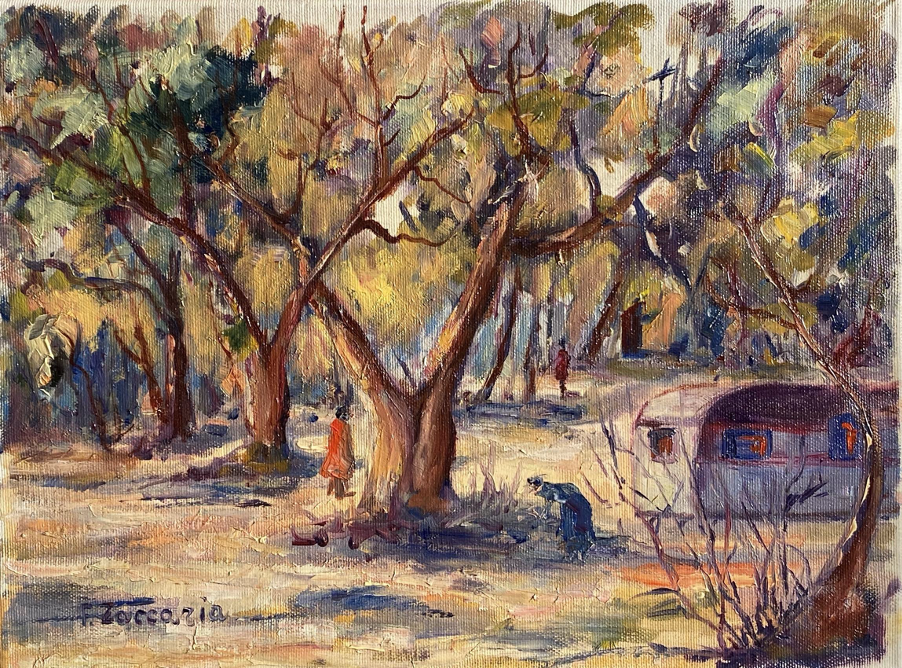 In Briatico, Calabria, some people are camping getting ready for the night collecting woods.